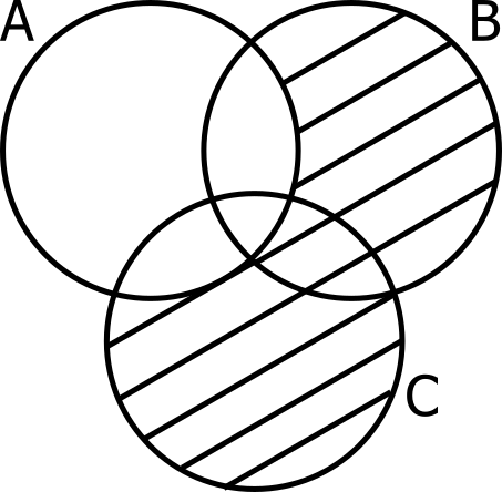 The expression on the right hand side contains all elements that are present in B and C but not in A. The Venn diagram is: